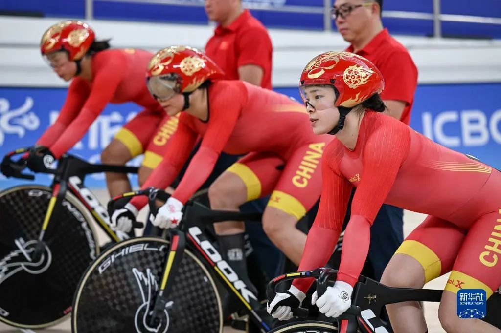 中國女隊鮑珊菊、苑麗穎、郭裕芳三人三次刷新亞運會記錄,并以46.376秒的成績在場地自行車女子團體競速賽決賽中奪冠,打破亞洲紀錄。